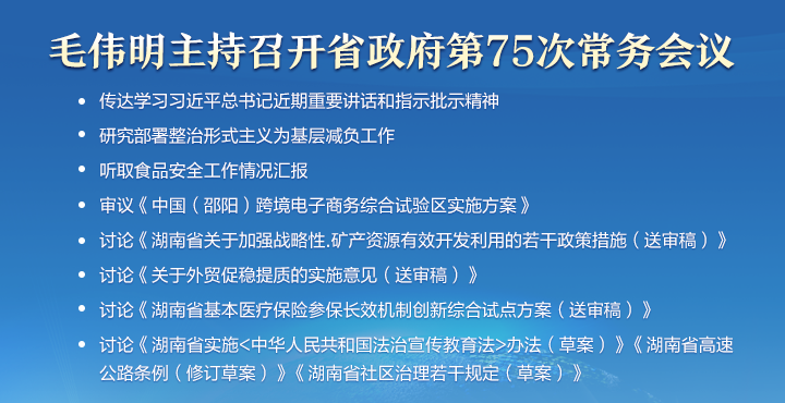 • 毛偉明主持省政府第75次常務會議 部署醫(yī)保參保、外貿促穩(wěn)提質、礦產資源開發(fā)利用等...